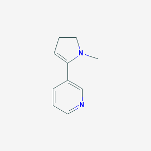 This compound, systematically named 3-(4,5-Dihydro-1-methyl-1H-pyrrol-2-yl)pyridine, is comprised of a pyridine ring linked to a 1-methyl-2-pyrroline ring.[3] The structure is notable for its enamine functionality within the pyrroline ring, which is in equilibrium with its keto-tautomer, pseudooxynicotine, particularly in aqueous solutions.[1][2] This equilibrium is pH-dependent, with the open-chain pseudooxynicotine favored in acidic conditions (below pH 4) and the cyclic this compound being the predominant species in alkaline environments (above pH 5).[2][4] Between pH 2 and 9.5, a third species, the nicotine-1'-iminium ion, coexists in equilibrium with the other two forms.[2][4]