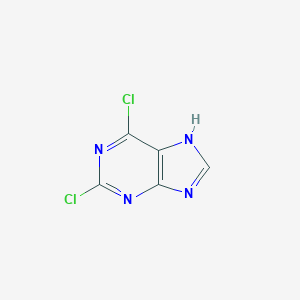 This compound is a halogenated derivative of purine (B94841), a fundamental heterocyclic aromatic organic compound. It serves as a critical intermediate and building block in medicinal chemistry and pharmaceutical development.[1][2][3][4] Its unique chemical structure, featuring two reactive chlorine atoms at the 2 and 6 positions of the purine ring, allows for selective modification and the synthesis of a wide array of biologically active molecules.[1][4][5] This technical guide provides a comprehensive overview of the chemical properties, structure, synthesis, and applications of this compound, with a focus on its role in drug discovery and development. It is utilized in the synthesis of various antiviral and anticancer drugs, including treatments for leukemia, and is also employed in biochemical research to study nucleic acid metabolism.[4]
