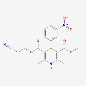 5-O-(2-cyanoethyl) 3-O-methyl 2,6-dimethyl-4-(3-nitrophenyl)-1,4-dihydropyridine-3,5-dicarboxylate is a dihydropyridine derivative that has garnered attention for its potential biological activities, particularly in cardiovascular pharmacology. This compound is structurally related to Nicardipine, a well-known calcium channel blocker used in treating hypertension and angina.
