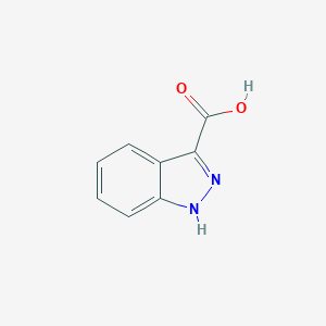 This compound, systematically named 1H-indazole-3-carboxylic acid, is a beige-colored powder. Its core structure consists of a bicyclic aromatic system where a benzene (B151609) ring is fused to a pyrazole (B372694) ring, with a carboxylic acid group substituted at the 3-position.