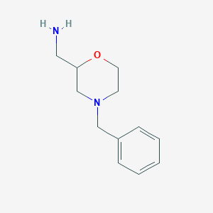 The structure of this compound is characterized by a saturated six-membered morpholine ring. The nitrogen atom of the morpholine is substituted with a benzyl group, and a methanamine group is attached to the carbon at the 2-position. This substitution pattern introduces a chiral center at the C2 position of the morpholine ring, meaning the compound can exist as two enantiomers. The specific stereochemistry is crucial for its biological activity and is a key consideration in its synthesis and application.