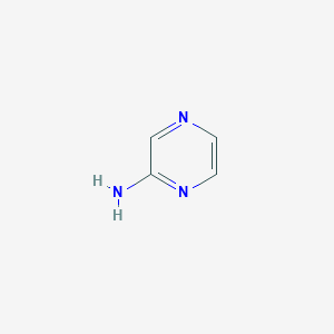 This compound, also known as pyrazin-2-amine, is an aromatic heterocyclic organic compound.[1] Its structure consists of a pyrazine (B50134) ring, which is a six-membered aromatic ring containing two nitrogen atoms in para positions, with a primary amino group substituted at one of the carbon atoms.[1] This structure imparts both basic and nucleophilic properties to the molecule.[1]
