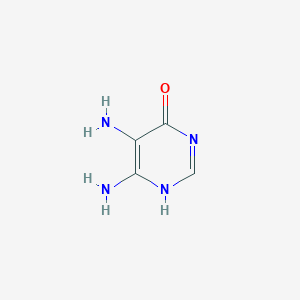 The synthesis of putrescine is primarily catalyzed by the enzyme ornithine decarboxylase (ODC). researchgate.netnih.gov ODC is a pyridoxal-5'-phosphate-dependent enzyme that facilitates the decarboxylation of L-ornithine, yielding putrescine. mdpi.com This step is considered a rate-limiting step in polyamine biosynthesis in animals and fungi. mdpi.comoup.com The activity of ODC is crucial for maintaining the cellular pool of putrescine, which is essential for the subsequent synthesis of higher polyamines like spermidine and spermine (B22157). nih.govmdpi.com In some organisms, putrescine can also be synthesized from arginine via arginine decarboxylase (ADC), but the ODC pathway is the primary route in mammals. oup.com The production of putrescine via the ornithine decarboxylation pathway has also been shown to be important for acid stress survival in some bacteria. nih.gov