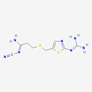 The mechanism of action of N-Cyano-3-((2-guanidino-5-thiazolyl)methylthio)propionamidine involves its interaction with molecular targets such as enzymes or receptors. The guanidine group can form strong hydrogen bonds, while the thiazole ring can participate in π-π interactions. These interactions can modulate the activity of the target molecules, leading to the desired biological or chemical effects.