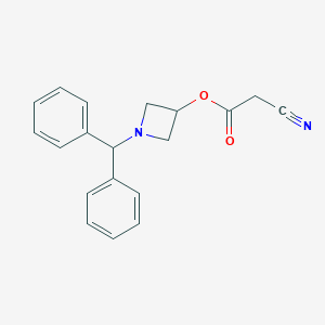 This compound is a chemical compound primarily recognized as a key intermediate in the synthesis of pharmaceuticals.[1][2] Its molecular structure incorporates a benzhydryl group, an azetidine ring, and a cyanoacetate moiety, making it a valuable building block for more complex molecules.[1] Most notably, it serves as a crucial precursor in the manufacturing of Azelnidipine, a dihydropyridine calcium channel blocker used for the treatment of hypertension.[2][3][4][5]
