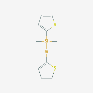This compound consists of two thienyl groups attached to a tetramethyldisilane backbone. Its molecular formula is , and it features a disilane core that contributes to its chemical reactivity and stability. The compound exhibits interesting photophysical properties, making it suitable for various applications in materials science and biochemistry.