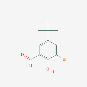 The mechanism of action of 3-Bromo-5-tert-butyl-2-hydroxybenzaldehyde depends on its specific application. In organic synthesis, it acts as a reactive intermediate that can undergo various transformations. In biological studies, it may interact with enzymes or other biomolecules, affecting their activity and function. The presence of the bromine atom and the hydroxyl group can influence its reactivity and interactions with other molecules .