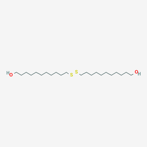 Bis(11-hydroxyundecyl) disulfide is a symmetrical disulfide compound featuring two undecyl chains, each terminated with a hydroxyl group. This unique molecular architecture makes it a valuable component in the field of materials science, particularly for the modification and functionalization of surfaces. Its disulfide group provides a robust anchor to noble metal surfaces, such as gold, while the terminal hydroxyl groups offer a site for further chemical reactions, enabling the creation of complex and functional surface coatings.