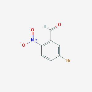 This compound is an organic compound characterized by a benzaldehyde (B42025) ring substituted with a bromine atom at the 5-position and a nitro group at the 2-position.[1][2] It typically appears as a yellow to orange crystalline solid and is soluble in organic solvents such as methanol, but insoluble in water.[1]