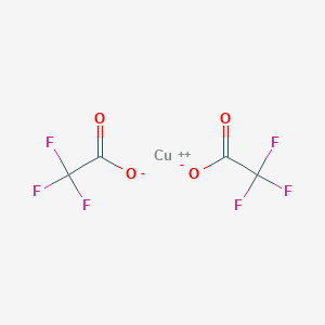 Copper(II) trifluoroacetate, Cu(O₂CCF₃)₂, serves as a significant precursor and building block in the synthesis of a variety of metal-assembled systems. These systems range from discrete polynuclear clusters to extended coordination polymers, including metal-organic frameworks (MOFs). The trifluoroacetate (TFA) anion's electronic properties and its coordination behavior play a crucial role in the structure of the resulting assemblies. While sometimes incorporated into the final structure, the TFA group can also act as a leaving group, facilitating the assembly of metal ions with various organic ligands.