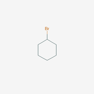 Bromocyclohexane, also known as cyclohexyl bromide, is a cyclic alkyl halide with the chemical formula C₆H₁₁Br. It is a colorless to pale yellow liquid at room temperature and possesses a characteristic odor.[1][2] This organobromine compound serves as a versatile intermediate and reagent in organic synthesis, making it a molecule of significant interest to researchers, scientists, and professionals in the field of drug development and fine chemical manufacturing. Its utility stems from the reactivity of the carbon-bromine bond, which readily participates in a variety of transformations, including nucleophilic substitution and elimination reactions. Furthermore, this compound is a precursor for the formation of Grignard reagents, which are invaluable for the construction of new carbon-carbon bonds. This guide provides a comprehensive overview of the core physical and chemical properties of this compound, complete with experimental protocols and visual diagrams to facilitate a deeper understanding and practical application of this compound.