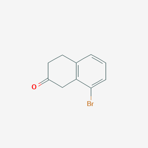 The core of this compound is a bicyclic structure composed of a fused benzene and cyclohexanone ring, formally known as 3,4-dihydro-2(1H)-naphthalenone. The bromine substituent is located on the aromatic ring at position 8, adjacent to the fused aliphatic ring. The carbonyl group is positioned at the second carbon of the saturated ring. This specific substitution pattern dictates the molecule's reactivity, with the aryl bromide available for cross-coupling reactions and the ketone for various nucleophilic additions and derivatizations.[1]