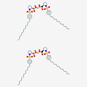 - Synthesis : The compound is typically prepared via ligand substitution reactions using rhodium precursors. The chiral prolinato ligand is synthesized from (R)-(+)-proline and p-dodecylbenzenesulfonyl chloride, followed by coordination to a dirhodium core. Technical notes from suppliers recommend transmetallation methods similar to those used for other dirhodium complexes (e.g., Rh2(R-PTAD)4), where silver(I)-ligand intermediates facilitate rhodium coordination .