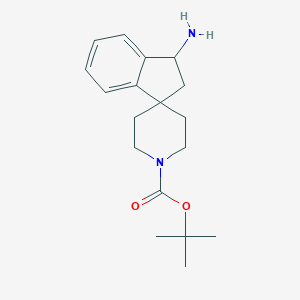 The mechanism of action of tert-butyl 3-amino-2,3-dihydrospiro[indene-1,4’-piperidine]-1’-carboxylate largely depends on its specific application. In a biological context, the compound may interact with molecular targets such as enzymes or receptors, modulating their activity. The spirocyclic structure can influence the compound’s binding affinity and selectivity, while the tert-butyl group can affect its pharmacokinetic properties.