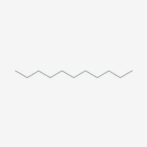 Undecane, also known as n-undecane or hendecane, is a straight-chain alkane hydrocarbon with the chemical formula C₁₁H₂₄.[1][2] It is the eleventh member of the alkane series and exists as a colorless liquid at standard temperature and pressure.[1][2][3] this compound is a non-polar molecule with low reactivity, characteristic of alkanes.[1][4] This compound is found naturally in petroleum fractions and is used in organic synthesis, as a solvent, and as an internal standard in gas chromatography.[1][2][5] This technical guide provides a comprehensive overview of the physical and chemical properties of this compound, detailed experimental protocols for their determination, and a summary of its key chemical reactions.