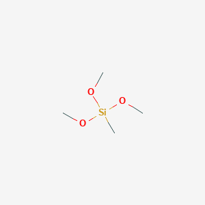This compound (CH₃Si(OCH₃)₃), also known as methyltrimethoxysilane (B3422404) (MTMS), is a versatile organosilicon compound with significant applications in various scientific and industrial fields. Its utility stems from the presence of both a stable methyl group and three hydrolyzable methoxy (B1213986) groups. This dual functionality allows it to serve as a crucial precursor in the synthesis of silicone resins, as a crosslinking agent for polysiloxane polymers, and as a surface modifying agent to impart hydrophobicity. In the pharmaceutical and drug development sectors, it is utilized in the preparation of silica-based materials for applications such as drug delivery and chromatography.