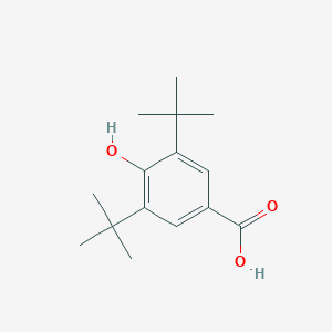 This compound, also known by synonyms such as BHT-COOH and 4-carboxy-2,6-di-tert-butylphenol, is an aromatic organic compound with significant interest in both industrial and pharmaceutical research.[1] Structurally, it is a derivative of benzoic acid featuring two bulky tert-butyl groups at positions 3 and 5, and a hydroxyl group at position 4.[2] These sterically hindering tert-butyl groups flanking the phenolic hydroxyl group are a key factor influencing its chemical reactivity and antioxidant properties.[1][3] The compound is a known metabolite of the widely used antioxidant Butylated Hydroxytoluene (BHT).[4][5][6] Its unique structure makes it a valuable building block in organic synthesis and a subject of investigation for its own biological activities.[1]