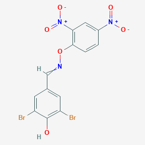 The chemical structure of this compound is characterized by a dibrominated phenol ring linked via an oxime ether to a dinitrophenyl group. This complex structure dictates its chemical behavior and biological activity.