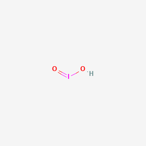 Iodous acid (HIO₂), an oxoacid of iodine, represents a fascinating yet challenging subject of study in inorganic chemistry. With iodine in the +3 oxidation state, it occupies a pivotal intermediate position in the series of iodine oxoacids.[1] Its high reactivity and transient nature make it a critical, albeit elusive, species in various chemical systems, including atmospheric chemistry and certain oscillating chemical reactions.[2] This technical guide provides a comprehensive overview of the core fundamental properties of this compound, focusing on its structure, stability, reactivity, and the methods employed to study this unstable compound. Due to its extreme instability, this compound has not been isolated as a pure substance; it exists transiently in aqueous solutions.[3]