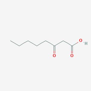 3-Oxooctanoic acid, also known as 3-ketooctanoic acid, is a medium-chain oxo-fatty acid that plays a role as an intermediate in fatty acid biosynthesis and elongation. Its chemical structure, featuring both a carboxylic acid and a ketone functional group, imparts it with specific reactivity and metabolic significance. This technical guide provides a comprehensive overview of the chemical properties, structure, and relevant biological context of this compound.