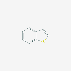 Benzo[b]thiophene is the most common isomer, where the benzene and thiophene rings are fused at the 2,3-position of the thiophene ring.[8] The molecule is planar, with all its carbon atoms being sp² hybridized.[8] This planarity is a key contributor to its aromatic character. It is a white, solid compound with an odor similar to naphthalene.[1][2] this compound is generally insoluble in water but soluble in common organic solvents like acetone, ether, and benzene.[1][9]