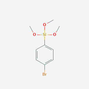 The para-bromine atom on the phenyl ring of (4-Bromophenyl)trimethoxysilane serves as a versatile reactive handle for palladium-catalyzed cross-coupling reactions. These reactions allow for the covalent linkage of the bromophenylsilyl moiety to a wide array of organic fragments, making it a valuable building block in organic synthesis and for the functionalization of materials.