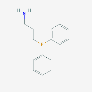 This compound, also known as (3-Aminopropyl)diphenylphosphine, is an organophosphorus compound that has emerged as a valuable ligand in inorganic and organometallic chemistry. Its unique structure, incorporating a trivalent phosphorus atom and a primary amine separated by a flexible propyl linker, allows it to act as a hemilabile P,N-chelating ligand. This dual functionality enables the formation of stable complexes with a variety of transition metals, influencing the steric and electronic environment of the metal center and thereby modulating its catalytic activity. The interplay between the soft phosphine donor and the hard amine donor is central to its utility in a wide range of chemical transformations, most notably in palladium-catalyzed cross-coupling reactions.