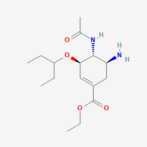 InChI=1S/C16H28N2O4/c1-5-12(6-2)22-14-9-11(16(20)21-7-3)8-13(17)15(14)18-10(4)19/h9,12-15H,5-8,17H2,1-4H3,(H,18,19)/t13-,14+,15+/m0/s1 | |