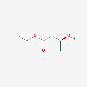 Ethyl (S)-3-hydroxybutyrate is a derivative of 3-hydroxybutyric acid, which is a ketone body produced during fatty acid metabolism. It is naturally occurring in various fruits, notably kiwi, and serves as a precursor for several pharmaceuticals. EHB can be synthesized through biotransformation processes using microorganisms such as Saccharomyces cerevisiae .