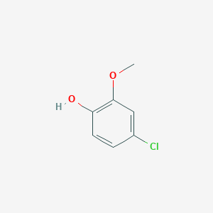 This compound (4-chloro-2-methoxyphenol) is a chlorinated phenol derivative that finds applications in various chemical and pharmaceutical research areas. Its structure, featuring both a hydroxyl and a methoxy group on the benzene ring, makes it an interesting building block for the synthesis of more complex molecules. The targeted synthesis of the 4-chloro isomer from guaiacol is a key process that requires careful control of reaction conditions to ensure high regioselectivity and yield. This guide focuses on the direct chlorination of guaiacol, a readily available starting material, to produce this compound.
