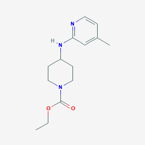 The synthesis of ETHYL 4-[(4-METHYLPYRIDIN-2-YL)AMINO]PIPERIDINE-1-CARBOXYLATE typically involves the reaction of 4-methylpyridine-2-amine with ethyl 4-piperidinecarboxylate under specific conditions. The reaction is usually carried out in the presence of a suitable solvent and a catalyst to facilitate the formation of the desired product .
