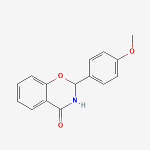 The mechanism of action of 2-(4-methoxyphenyl)-2H-benzo[e][1,3]oxazin-4(3H)-one involves its interaction with specific molecular targets, such as enzymes or receptors. The compound can act as an inhibitor or modulator, affecting the activity of these targets and leading to various biological effects. The exact pathways involved depend on the specific application and the molecular targets being studied .