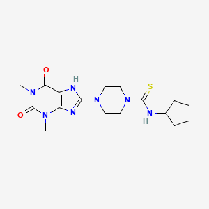 N-cyclopentyl-4-(1,3-dimethyl-2,6-dioxo-2,3,6,7-tetrahydro-1H-purin-8-yl)piperazine-1-carbothioamide stands out due to its unique combination of a purine derivative and a piperazine ring, which imparts specific chemical and biological properties. This uniqueness makes it a valuable compound for research and development in various scientific fields.