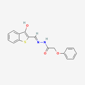 N’~1~-[(3-HYDROXY-1-BENZOTHIOPHEN-2-YL)METHYLENE]-2-PHENOXYACETOHYDRAZIDE is a complex organic compound that belongs to the class of benzothiophenes. Benzothiophenes are heterocyclic compounds containing a benzene ring fused to a thiophene ring. This particular compound is characterized by the presence of a hydrazide group attached to a phenoxyacetic acid moiety, with a methylene bridge linking it to a hydroxybenzothiophene unit. The unique structure of this compound makes it of interest in various fields of scientific research, including medicinal chemistry and materials science.