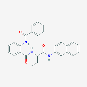 The mechanism of action of N-[1-(naphthalen-2-ylamino)-1-oxobutan-2-yl]-2-[(phenylcarbonyl)amino]benzamide involves its interaction with specific molecular targets. The compound can bind to enzymes or receptors, altering their activity and leading to various biological effects. The exact pathways and targets depend on the specific application and the biological system being studied.