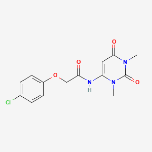 2-(4-chlorophenoxy)-N~1~-(1,3-dimethyl-2,6-dioxo-1,2,3,6-tetrahydro-4-pyrimidinyl)acetamide is a synthetic organic compound It features a chlorophenoxy group and a pyrimidinyl acetamide moiety, which are common in various pharmaceutical and agrochemical compounds