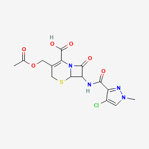 3-[(Acetyloxy)methyl]-7-{[(4-chloro-1-methyl-1H-pyrazol-3-yl)carbonyl]amino}-8-oxo-5-thia-1-azabicyclo[4.2.0]oct-2-ene-2-carboxylic acid is a complex organic compound with significant applications in medicinal chemistry. It is a derivative of the β-lactam class of antibiotics, which are known for their ability to inhibit bacterial cell wall synthesis. This compound is particularly notable for its broad-spectrum antibacterial activity and its resistance to β-lactamase enzymes produced by certain bacteria.