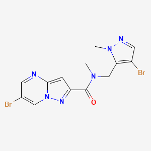 6-BROMO-N~2~-[(4-BROMO-1-METHYL-1H-PYRAZOL-5-YL)METHYL]-N~2~-METHYLPYRAZOLO[1,5-A]PYRIMIDINE-2-CARBOXAMIDE is a complex organic compound that belongs to the class of pyrazolo[1,5-a]pyrimidines. These compounds are known for their diverse biological activities and potential therapeutic applications. The presence of bromine atoms and pyrazole rings in its structure suggests that it may have significant pharmacological properties.