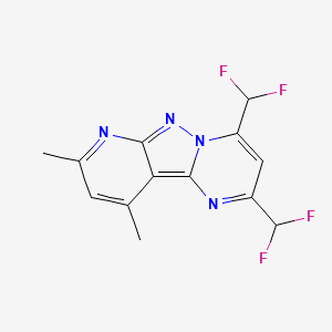 4,6-bis(difluoromethyl)-11,13-dimethyl-3,7,8,10-tetrazatricyclo[7.4.0.02,7]trideca-1,3,5,8,10,12-hexaene is a complex organic compound with a unique structure. This compound belongs to the class of heterocyclic compounds, which are known for their diverse chemical properties and wide range of applications in various fields such as chemistry, biology, and medicine.