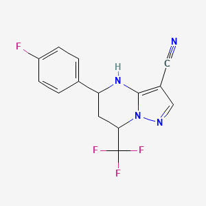 5-(4-Fluorophenyl)-7-(trifluoromethyl)-4,5,6,7-tetrahydropyrazolo[1,5-a]pyrimidin-3-yl cyanide is a complex organic compound characterized by the presence of fluorine and trifluoromethyl groups These groups are known for their significant impact on the compound’s chemical properties, including increased stability and lipophilicity