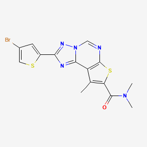2-(4-BROMO-2-THIENYL)-N~8~,N~8~,9-TRIMETHYLTHIENO[3,2-E][1,2,4]TRIAZOLO[1,5-C]PYRIMIDINE-8-CARBOXAMIDE is unique due to the presence of the bromine and thienyl groups, which enhance its reactivity and potential for diverse applications. Its specific structure allows for targeted interactions with biological molecules, making it a valuable compound in medicinal chemistry .