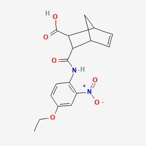 3-[(4-Ethoxy-2-nitrophenyl)carbamoyl]bicyclo[2.2.1]hept-5-ene-2-carboxylic acid is a complex organic compound with potential applications in various fields of scientific research. This compound features a bicyclic structure with a carboxylic acid group and a nitrophenyl carbamoyl moiety, making it an interesting subject for chemical studies.