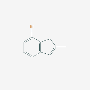 7-Bromo-2-methyl-1H-indene is an organic compound with a molecular formula of C10H9Br.[1][2][3] It is characterized by an indene structure with a bromine atom at the 7-position and a methyl group at the 2-position.[1] Depending on its purity and temperature, it can be a colorless to pale yellow liquid or solid.[1] Due to its hydrophobic nature, it has limited solubility in water but is more soluble in organic solvents like ethanol and dichloromethane.[1] The presence of bromine suggests that this compound should be handled with care as brominated compounds can be hazardous.[1]