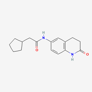 2-Cyclopentyl-N-(2-oxo-1,2,3,4-tetrahydro-6-quinolinyl)acetamide is a complex organic compound that belongs to the class of quinoline derivatives. Quinoline derivatives are known for their wide range of biological activities and applications in medicinal chemistry. This compound, in particular, has garnered interest due to its potential therapeutic properties and its role in various chemical reactions.