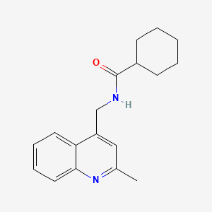 The synthesis of N-[(2-methylquinolin-4-yl)methyl]cyclohexanecarboxamide typically involves the reaction of 2-methylquinoline with cyclohexanecarboxylic acid chloride in the presence of a base such as triethylamine. The reaction is carried out under reflux conditions, and the product is purified by recrystallization or column chromatography.