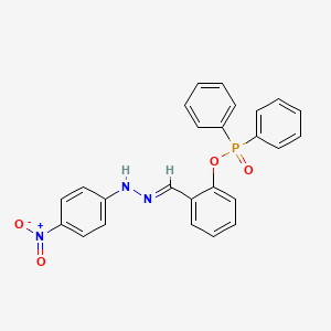 2-{[(E)-2-(4-NITROPHENYL)HYDRAZONO]METHYL}PHENYL DIPHENYLPHOSPHINATE is a complex organic compound known for its unique chemical structure and properties. This compound features a hydrazone linkage, a nitrophenyl group, and a diphenylphosphinate moiety, making it a subject of interest in various fields of scientific research.