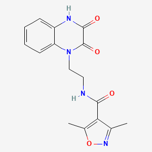 N-{2-[3-hydroxy-2-oxo-1(2H)-quinoxalinyl]ethyl}-3,5-dimethyl-4-isoxazolecarboxamide is a complex organic compound that features a quinoxaline moiety linked to an isoxazole ring. This compound is of significant interest in medicinal chemistry due to its potential biological activities, including anti-inflammatory and anticancer properties.