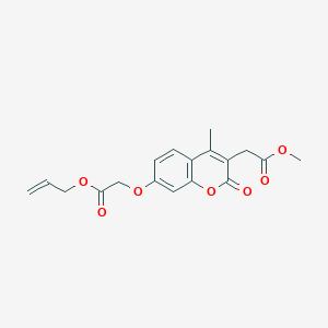 The mechanism of action of methyl {7-[2-(allyloxy)-2-oxoethoxy]-4-methyl-2-oxo-2H-chromen-3-yl}acetate involves its interaction with specific molecular targets and pathways. The compound’s chromen-2-one core can interact with enzymes and receptors, modulating their activity. Additionally, the allyloxy group can undergo metabolic transformations, leading to the formation of active metabolites that contribute to its overall biological effects .