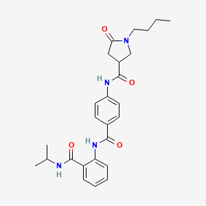 The mechanism of action of 1-butyl-5-oxo-N-(4-{[2-(propan-2-ylcarbamoyl)phenyl]carbamoyl}phenyl)pyrrolidine-3-carboxamide would depend on its specific application. In a biological context, it may interact with specific molecular targets such as enzymes or receptors, modulating their activity and affecting downstream signaling pathways .