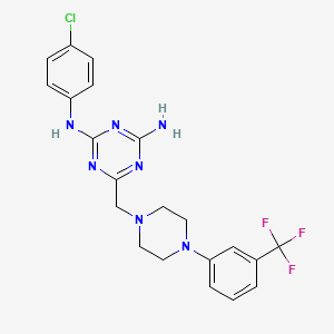 N2-(4-Chlorophenyl)-6-({4-[3-(Trifluoromethyl)phenyl]piperazin-1-yl}methyl)-1,3,5-triazine-2,4-diamine is a complex organic compound that features a triazine core substituted with chlorophenyl and trifluoromethylphenyl groups